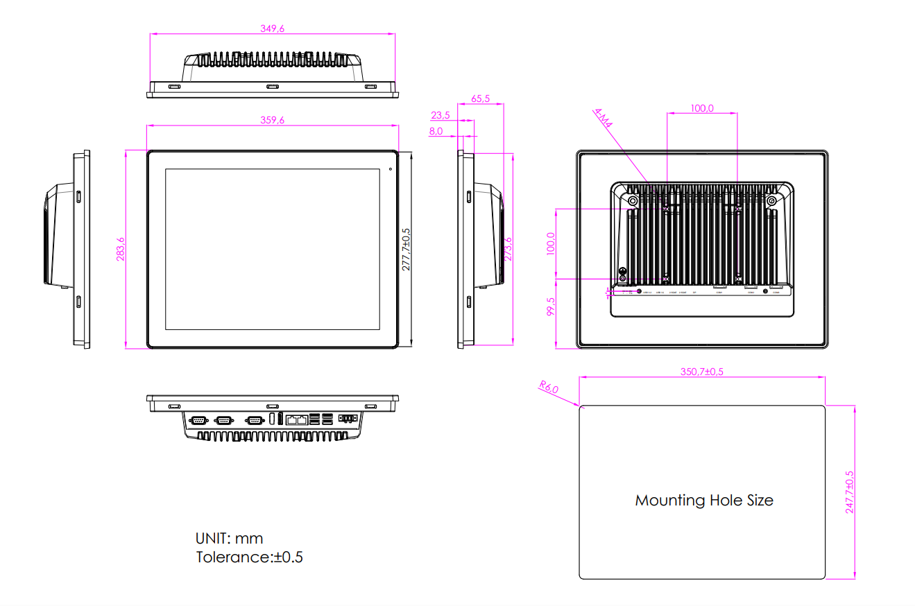 > DIMENSIONI: 359.6 x 283.6 x 65.5 mm