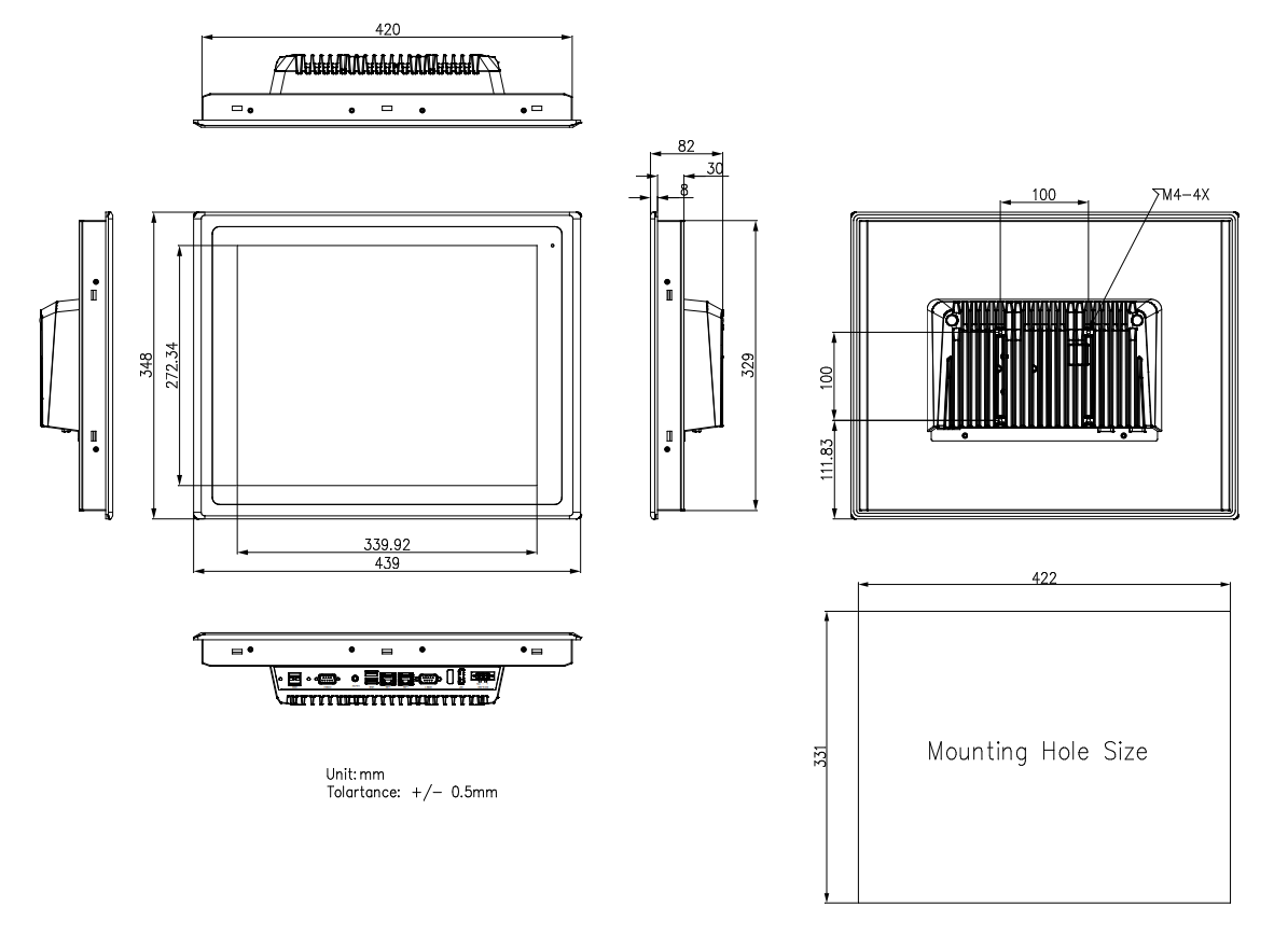 > DIMENSIONI: 439 x 348 x 82 mm
