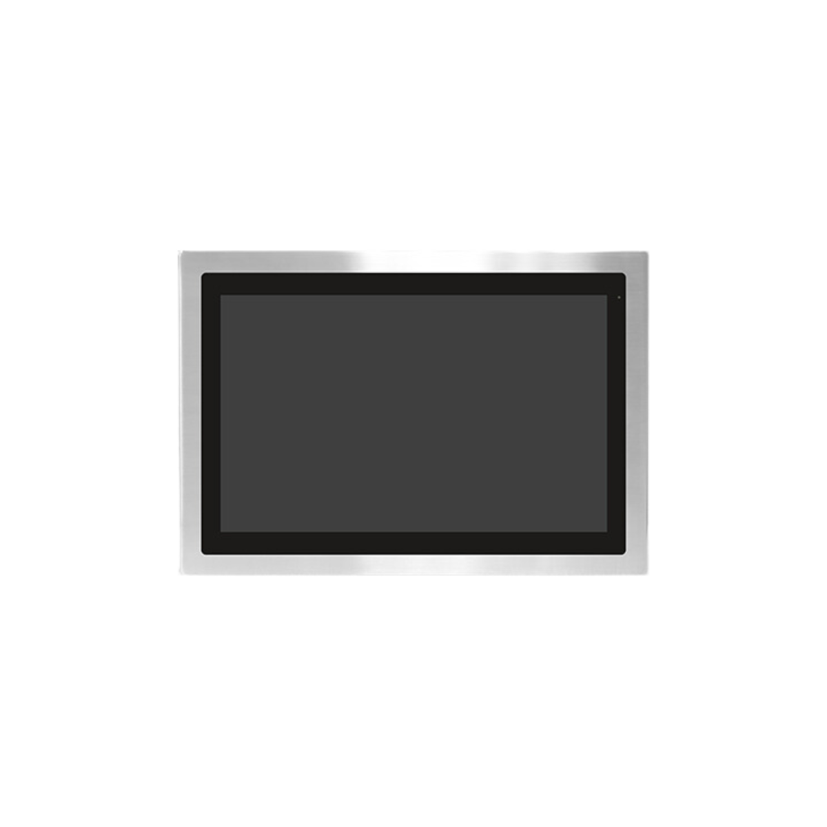 Panel PC fanless FABS-918B da 18,5" con processore Intel Core i3/i5 di 8ª generazione, chassis in acciaio inox 304/316, protezione IP66/IP69K, touch screen capacitivo o resistivo e alimentazione DC 9–36V.